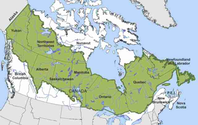 The boreal forest is the largest forest region in Ontario, covering two thirds of the province—some 50 million hectares—from the Great Lakes-St. Lawrence forest to the Hudson Bay Lowlands.