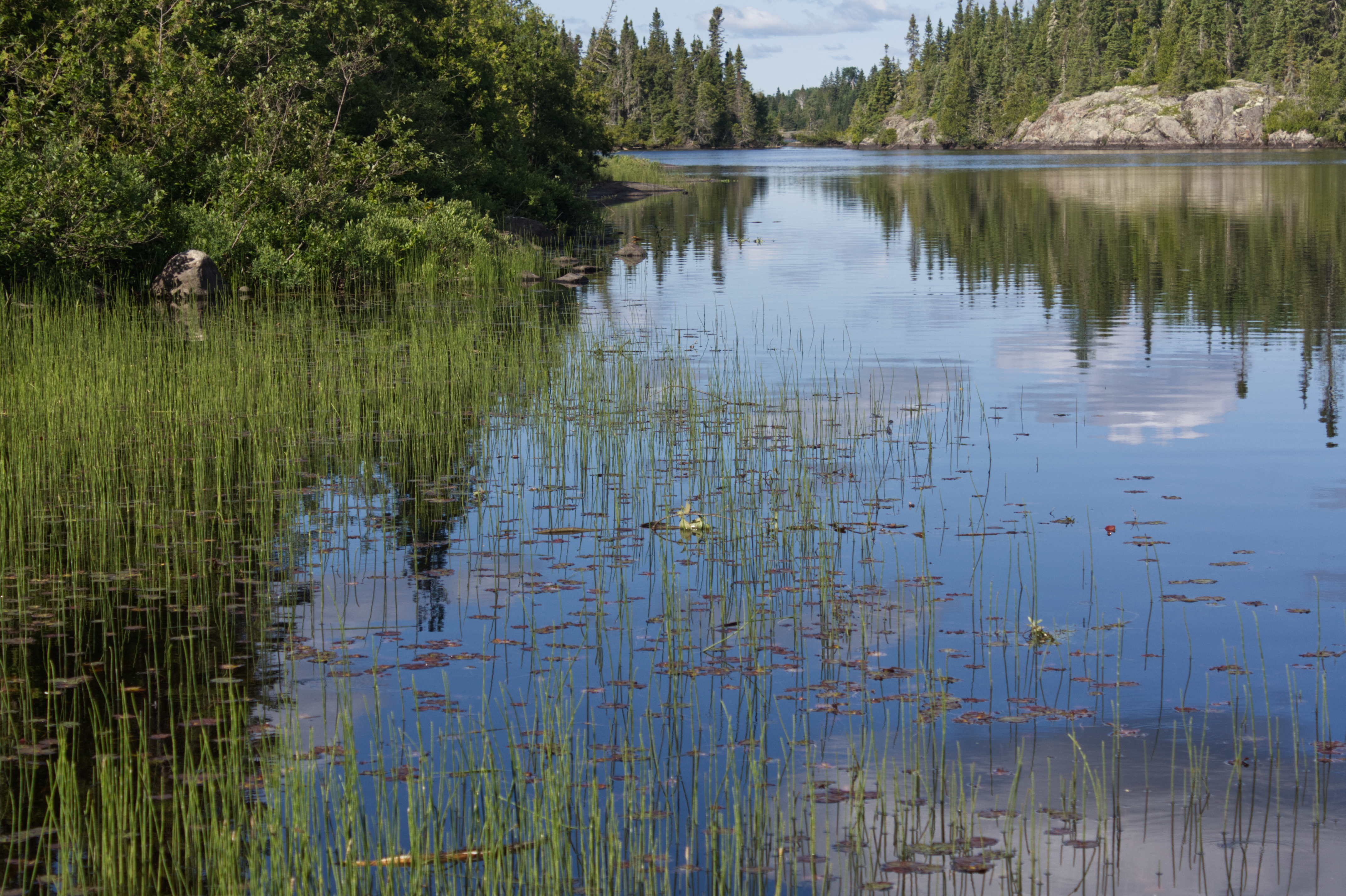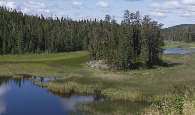 On my drive through the boreal forest north of Wawa, I encountered extensive wetlands—mostly marshes, bogs and fens, forming winding networks of water habitats. These water features are key to the environment’s water regulation, excellent carbon stores and provide habitat for many species. Boreal wetlands are seasonally or permanently waterlogged (up to 2 metres deep) with plant life adapted to wet conditions, including trees, shrubs, grasses, moss and lichen. Organic wetlands (peatlands or muskegs) such as bogs and fens accrue deep organic deposits. Mineral wetlands (marshes, swamps and open water) have shallow organic deposits; these open water systems have nutrient-rich soils.