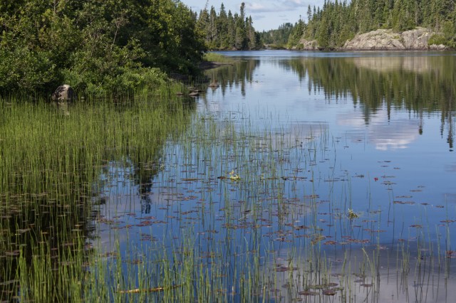 I stopped at Kabenung Lake, considered a prime fishing lake, supporting diverse populations that include Northern Pike, Whitefish, Bass, Walleye, Brook Trout, Lake Trout, and Perch. Judging by the map, I had only a small view of the large convoluted 16 km long lake from the highway. The angler’s bathymetric map suggests a maximum depth of fifteen metres near the lake’s centre.