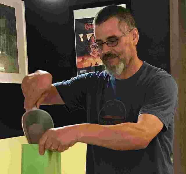 Filling my dark roast coffee order (photo by Nina Munteanu)