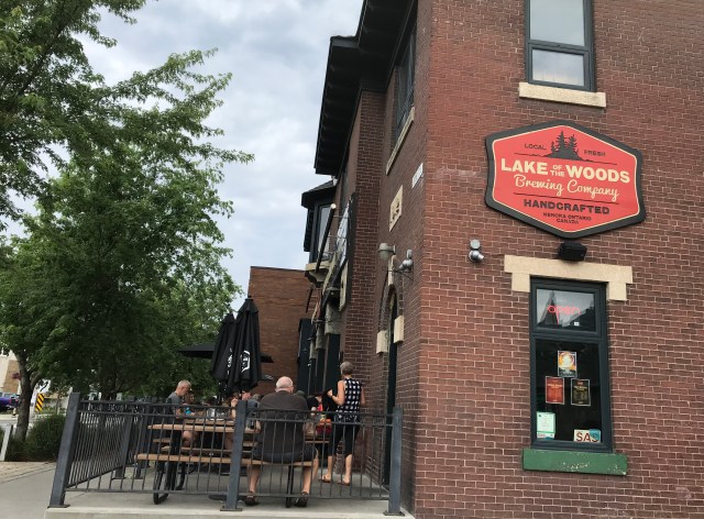 Kenora is a charming old town with character architecture and a vibrant downtown. I made a short stop at the craft brewery Lake of the Woods Brewing Company, bought some Sneaky Peach Pale Ale to take with me, and continued west to the Manitoba border.