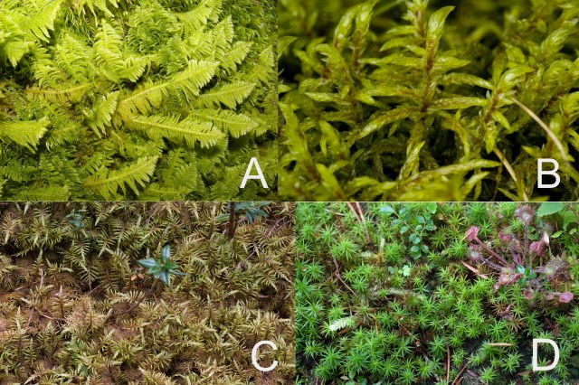 Common mosses in the spruce-dominated forest include Ostrich Plume Moss (Ptilium crista-castrensis), Red-Stemmed Feathermoss (Pleurozium schreberi), Glittering Feathermoss (Hylocomium splendens), and various species of Sphagnum. Ostrich Plume Moss and Sphagnum are key carbon cyclers in the poorly drained acidic boreal forest, contributing significantly to net primary productivity. They decompose slowly, leading to substantial organic matter accumulation. Sphagnum in particular influences soil organic matter and carbon consumption during wildfires. Due to their ability to retain water, their acidity and resistance to decay, Sphagnum plays a crucial role in both the development and long-term persistence of peatlands where black spruce likes to live.