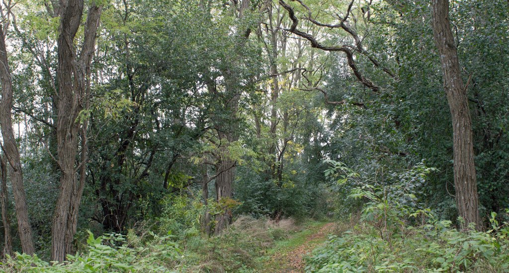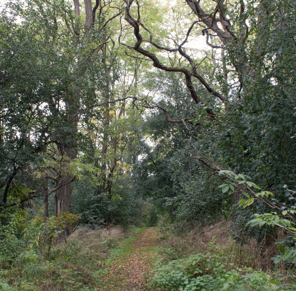 Trail through black locust grove, Trent Forest, ON (photo by Nina Munteanu)