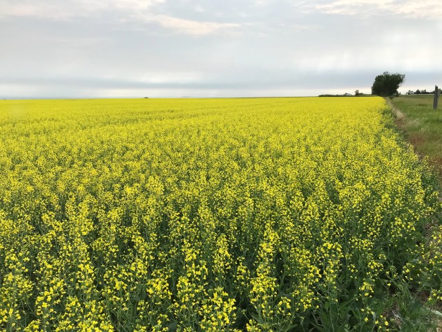 I emerged from the Lake of the Woods boreal forest into Manitoba’s true flatlands as I neared Winnipeg. Though, the eastern part of Manitoba was similar to the boreal hills of Ontario, it soon levelled out into flat stretches of prairie grasslands, and expansive fields of various crops including bright yellow fields of blooming canola. It was early July and I’d caught it at its peak in flowering. Bright waves of yellow continued from Manitoba into Saskatchewan, where canola seemed to take over the land. At times all I saw was lemon yellow all the way to the horizon in all directions. Canola accounts for the largest area of land dedicated to any single crop in Saskatchewan. I’m told that there are over 22 million acres of canola growing in that province.