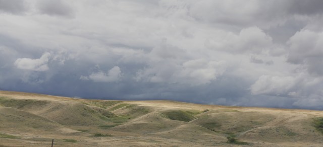 I made good time, driving the straight roads along flat and gently rolling landscapes sculpted by wind and water. This was big sky country, and I recalled that this was all a giant shallow and warm inland sea in prehistoric times.