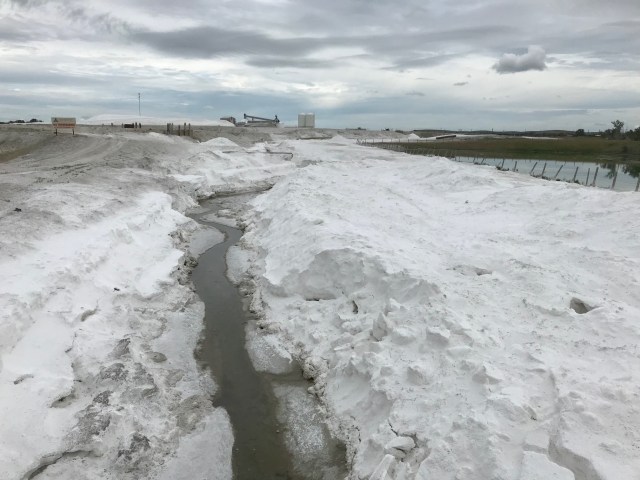 Near the village of Chaplin, Saskatchewan, I stumbled on a moonscape of white chalk-like hills. This was the sodium sulphate mine on the northern shore of Chaplin Lake, a salt lake that is a major stop over for migratory birds that feed on its brine shrimp. I discovered that the lake formed in the late Pleistocene when glaciers shaped the landscape and deposited salts and other minerals into the soil and bedrock. As the glaciers receded in the late Pleistocene, meltwater channels dried and left isolated depressions filled with meltwater and groundwater rich in dissolved salts from underlying glacial deposits. Hot, dry summers and persistent winds common in the Saskatchewan prairies increased evaporation and concentrated salts, leading to crystalline sodium sulphate deposits, which created the salt lake. The salt mine started in 1947 and today is one of the largest producers of anhydrous sodium sulphate in North America with production capability of 285,000 tons per year.
