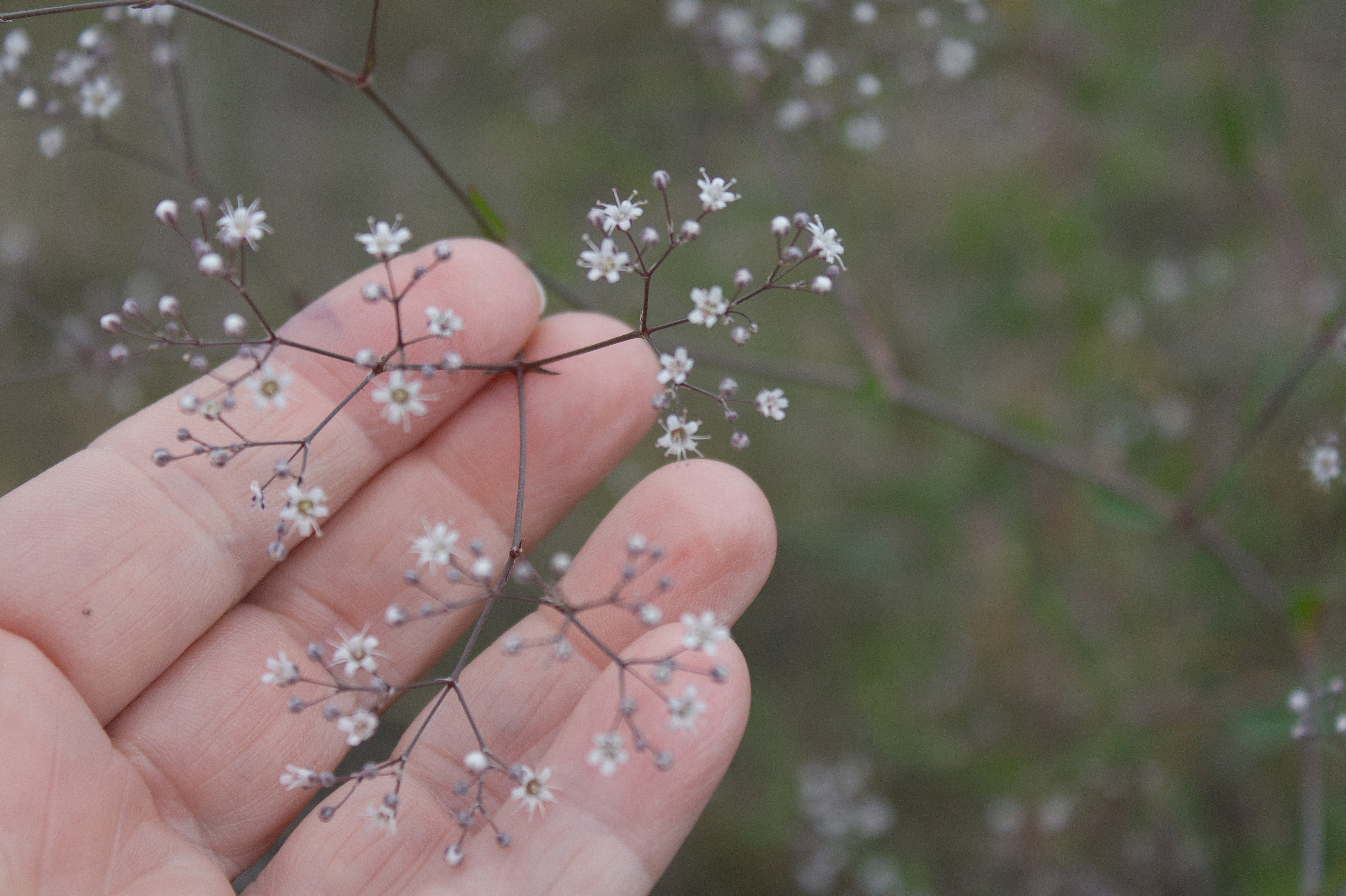 I also found ‘frothy’ clusters of pretty tiny white 5-petaled flowers that I finally identified as Prairie Baby’s Breath (Gypsophila paniculata), growing by the roadside and in the grasslands of Saskatchewan. The pretty tiny white 5-petaled flowers It’s a much branched perennial, the inflorescence often giving the plant a dome shape. Foliage is glaucous and plants are glabrous except for small hairs on the calyx. This plant has been designated a noxious weed in Saskatchewan.