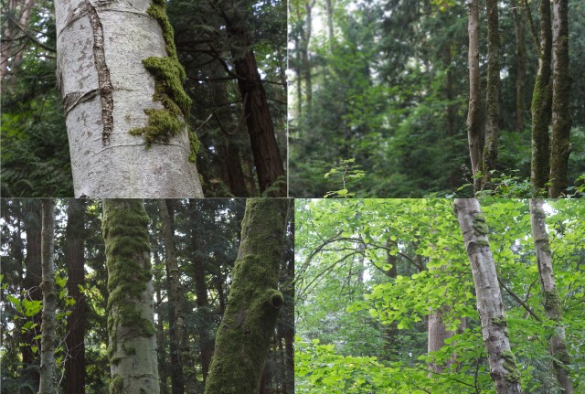 Check out my article on the red alder for a comprehensive study on the mosses and lichens growing on the bark of several old red alders from a nearby forest.