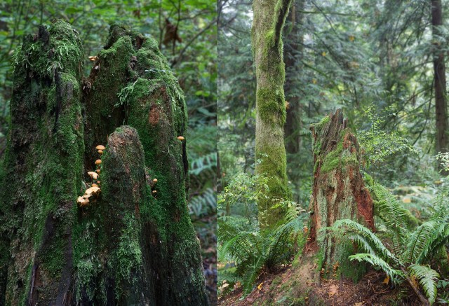 I documented the living growths on two large rotting cedar stumps (>55 cm dbh). Growths included mostly mosses, liverworts and some tiny fungi.
