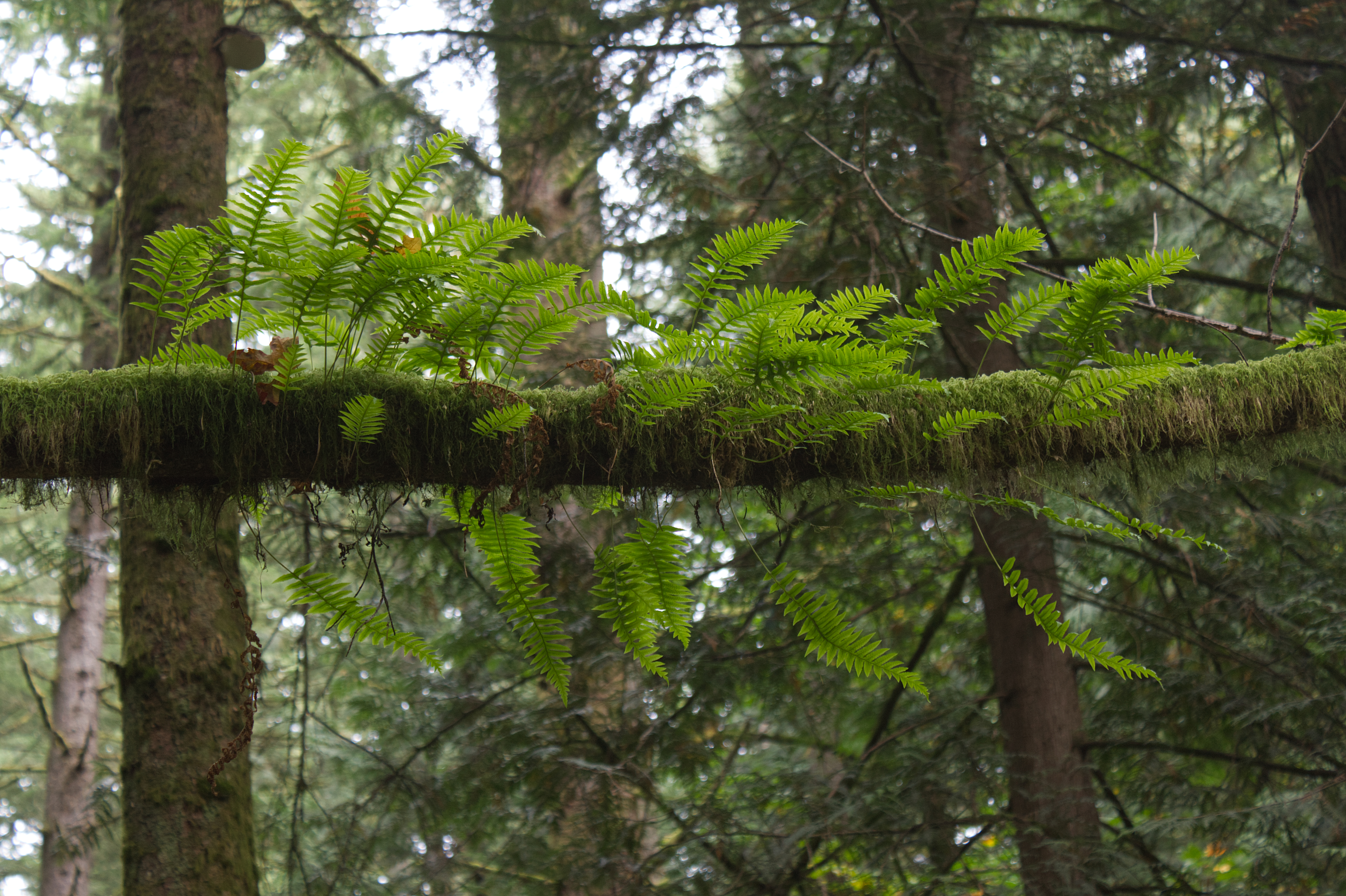 The forest floor of Watershed Park was a verdant blanket of ferns: mostly Western sword fern (Polystichum munitum), deer fern (Blechnum spicant), lady fern (Athyrium filix-femina) and western bracken fern (Pteridium aquilinum). I found Licorice fern (Polypodium glycyrrhiza), mostly as an epiphyte on the big leaf maple trunks and branches, keeping company with thick carpets of various mosses.