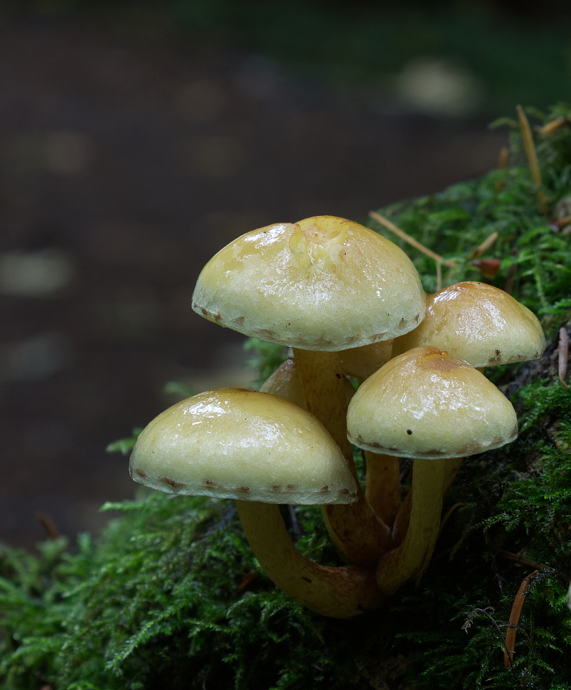 There were also small clusters of Pellucid Four-Toothed Moss (Tetraphis pellucida) on the stump. This interesting moss is known to thrive on rotting cedar wood, which provides a moist, acidic substrate particular to its growth. I identified it by its tiny upright, tufts of green shoots (8-15 mm high) and its splash cups—a peristome of four triangular teeth—that hold tiny green gemmae, resembling ‘nests and eggs’.