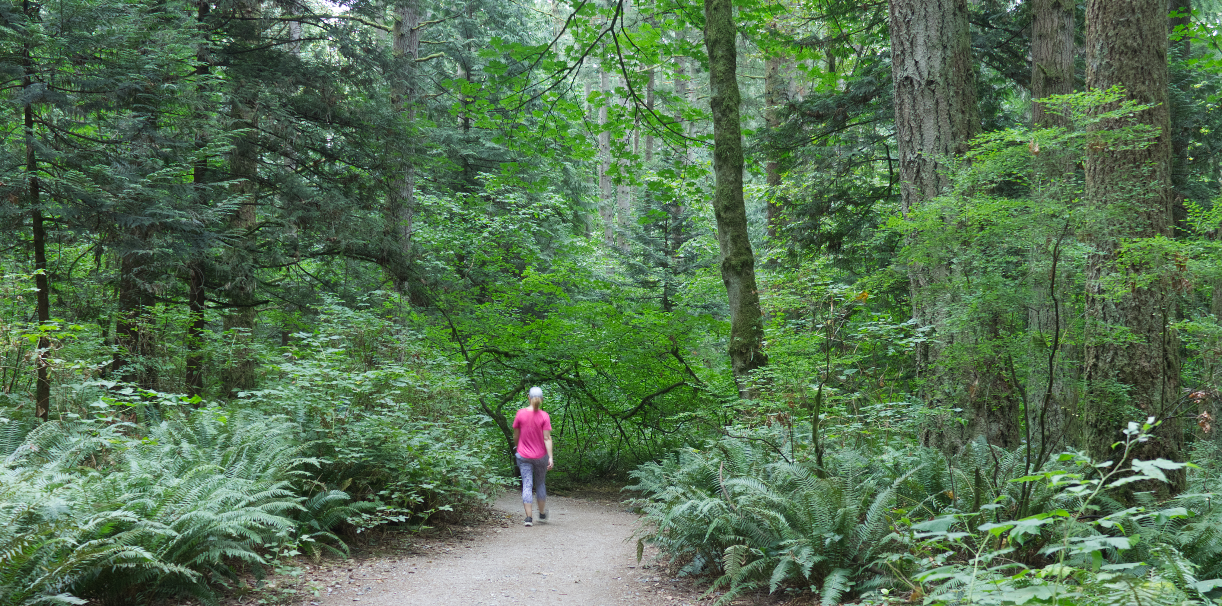 My favourite walk is a 2.5 km loop, first down the Water Tower Trail to the Lower Trail, turning west on it to its end then winding my way back up to the Pinewood Trail, and looping back to the water fountain for a drink of fresh spring water and finally up to my car, parked on Kittson Parkway. The walk takes roughly an hour—longer if I’m taking photographs—giving me a view of many of the large trees, snags, stumps and associated mosses, ferns, lichens and fungi that inhabit this rich and diverse ecosystem.