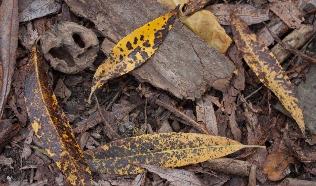 The dead leaves on the ground undergo strange transformations. Some had already changed colour from green to flaming reds and oranges or canary yellow or brilliant vermillion. Now fallen on the ground, turned grey or brown or even black, they transform again. Some of the leaves are mutilated, or skeletonized into reticulated patterns like delicate lace. Others have very round holes dug into them or chopped out of them. Yet others have ‘pimples’ or ‘potholes’ or blotches or smears of bubbling or jelly-like substances. All this depends on the agents at work: decomposers, saprotrophs, saprobic organisms. And all play a critical role in a larger and necessary phenomenon: decay. Decay is a vital transformation that ensures the health of the forest; decay is responsible for recycling usable nutrients back into the forest in a productive cycle of life. Agents of transformation include adult and larval invertebrates, fungi, protista and bacteria. All are responsible for continuing life on this planet by breaking down organic matter into usable nutrients—often used by the very same plants that donated the dead organic matter in the first place.