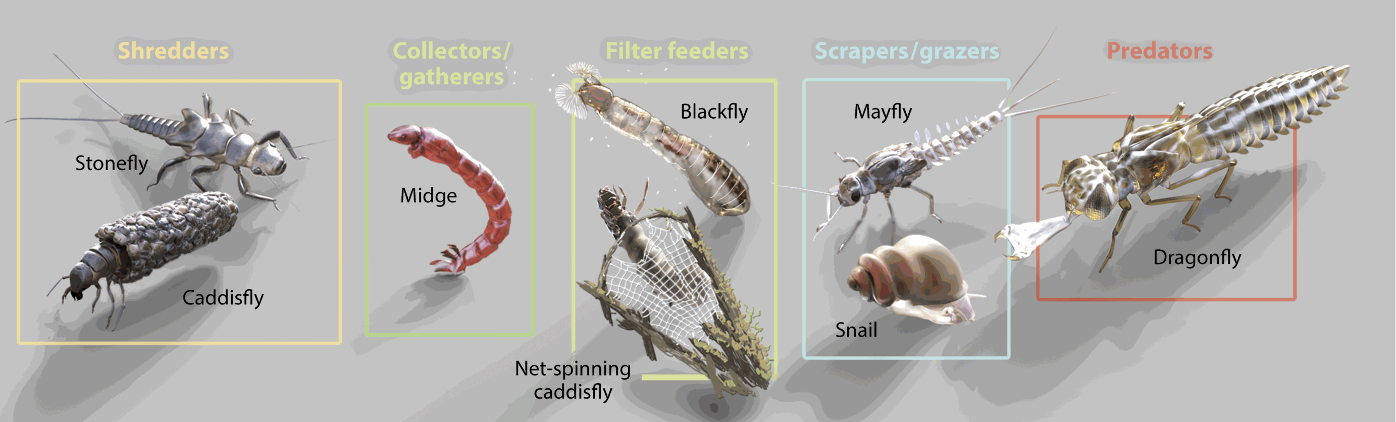 Cummins, K.W. 1973. “Trophic relations of aquatic insects.” Annu. Rev. Entomol. 18(1): 183-206.