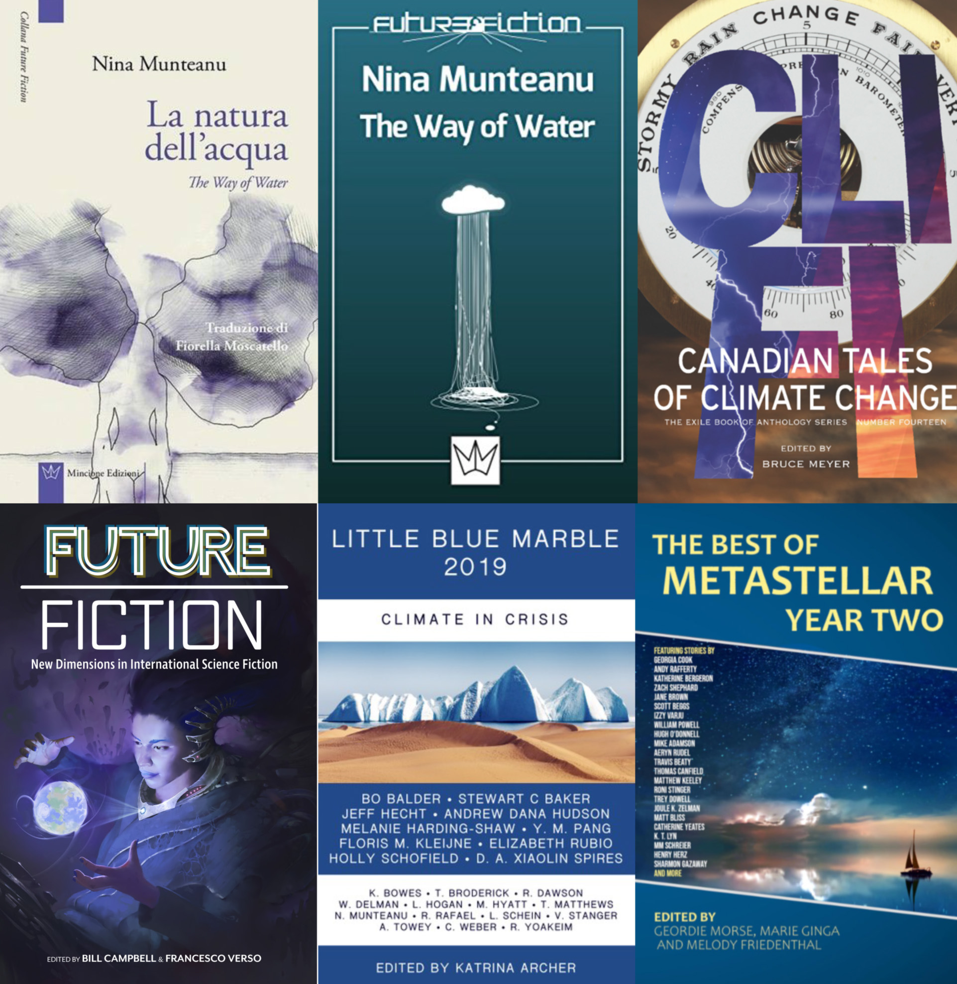 Nina Munteanu is a Canadian ecologist / limnologist and novelist. She is co-editor of Europa SF and currently teaches writing courses at George Brown College and the University of Toronto. Visit www.ninamunteanu.ca for the latest on her books. Nina’s bilingual “La natura dell’acqua / The Way of Water” was published by Mincione Edizioni in Rome. Her non-fiction book “Water Is…” by Pixl Press (Vancouver) was selected by Margaret Atwood in the New York Times ‘Year in Reading’ and was chosen as the 2017 Summer Read by Water Canada. Her novel “A Diary in the Age of Water” was released by Inanna Publications (Toronto) in June 2020.
