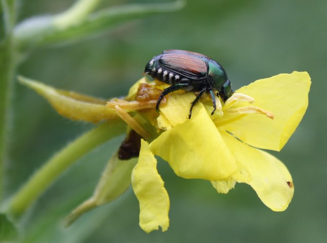 The best way is to look closely at the host plant and look for clues. Sometimes the culprit is right there, still doing their work; I saw many Japanese beetles on basswood and linden trees and caught one still gorging on an evening primrose flower. The damage pattern may also reveal the specific handiwork of the skeletonizer (e.g., upper or lower leaf surface, if leaves are folded or rolled). Physical signs, such as fine black insect droppings (frass), may remain on the leaf or white silky webs or cocoons can be seen on a leaf or nearby substrate. The work of the skeletonizer can also be identified by their preference. For instance, different skeletonizers prefer certain plants (e.g. grape, oak, birch).